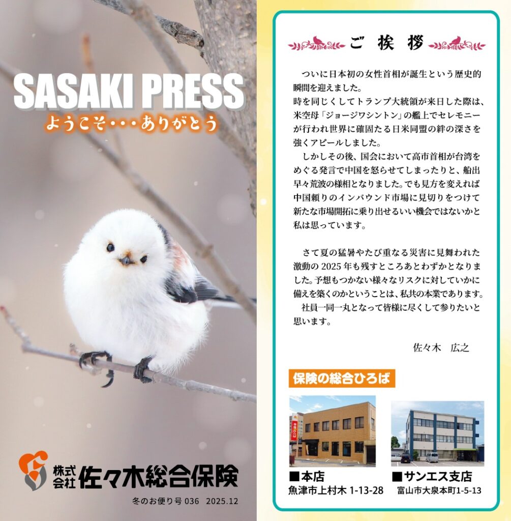 富山県魚津市の保険代理店、佐々木総合保険です。